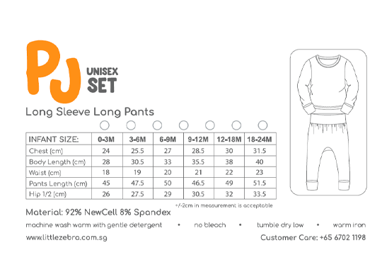 The main feature of Little Zebra’s NEWCELL Pyjamas is the soft NEWCELL fabric. This material is Anti-bacterial; Anti-Odor; Anti-wrinkle and Ani-pilling. It’s not just super soft and super stretchy. Most importantly, it’s environmentally friendly. Therefore, when you choose this Pyjamas, you’re making a comfortable choice for your child and a responsible one for our planet.